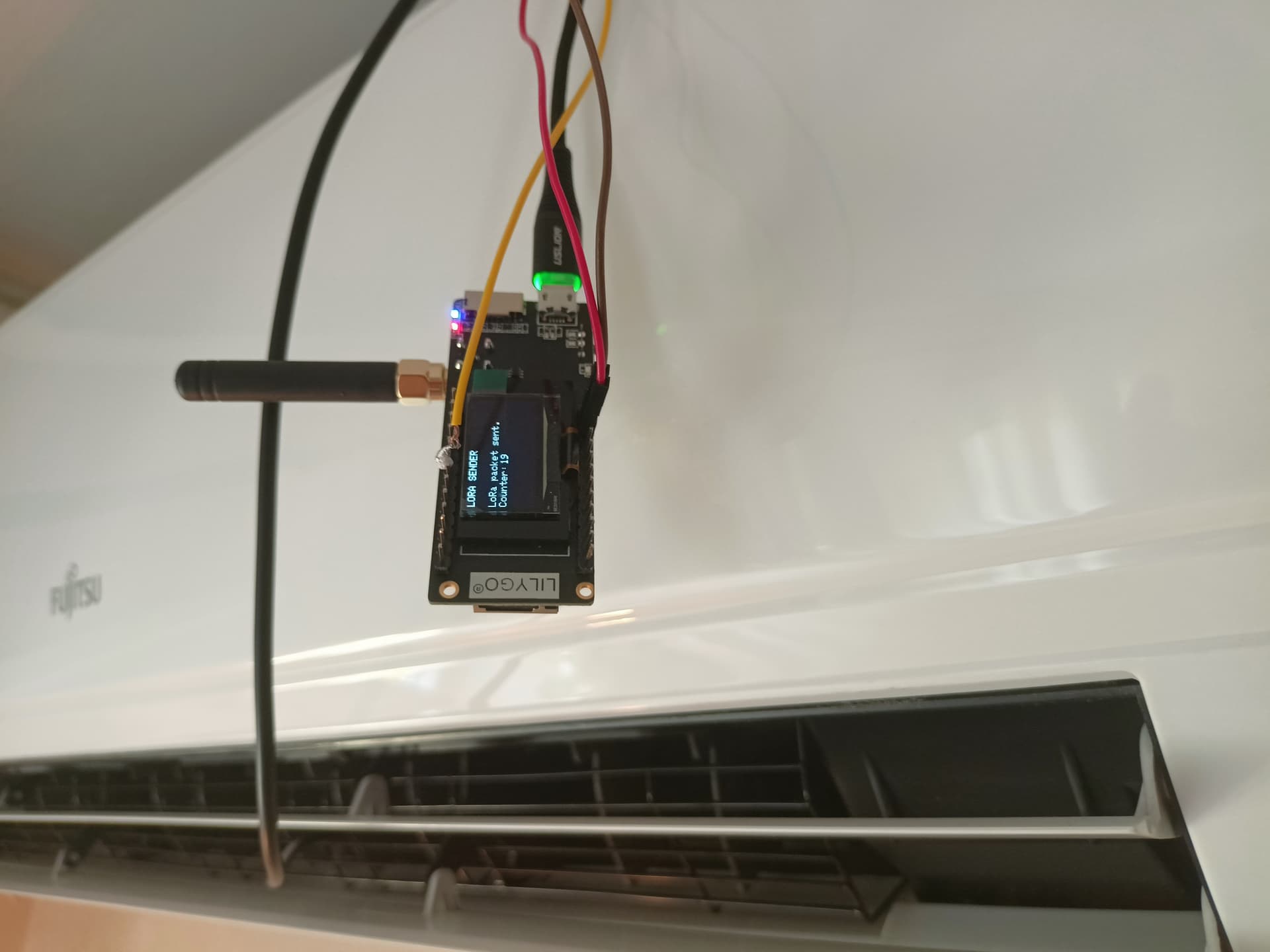 Measuring for fun, the air temperature that my split air conditioner unit delivers through a dallas sensor: